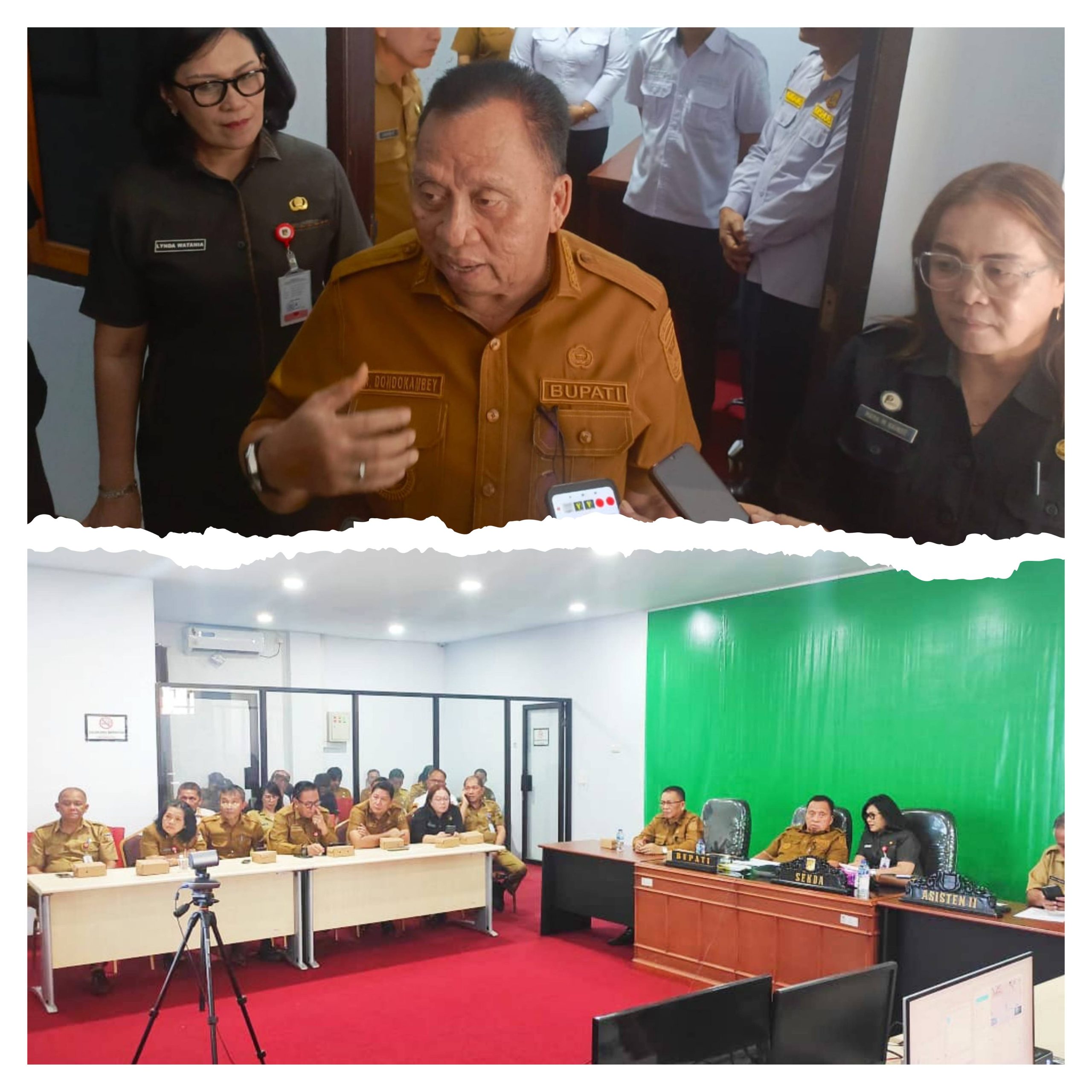 MINAHASA SULUT POST – Bupati Minahasa, Robby Dondokambey, S.Si, bersama Sekretaris Daerah Kabupaten Minahasa, Dr. Lynda D. Watania, MM, M.Si, mengikuti Rapat Koordinasi (Rakor) Pengendalian Inflasi yang berlangsung secara virtual di ruang Command Center Kantor Bupati Minahasa, Selasa (2/9/25).