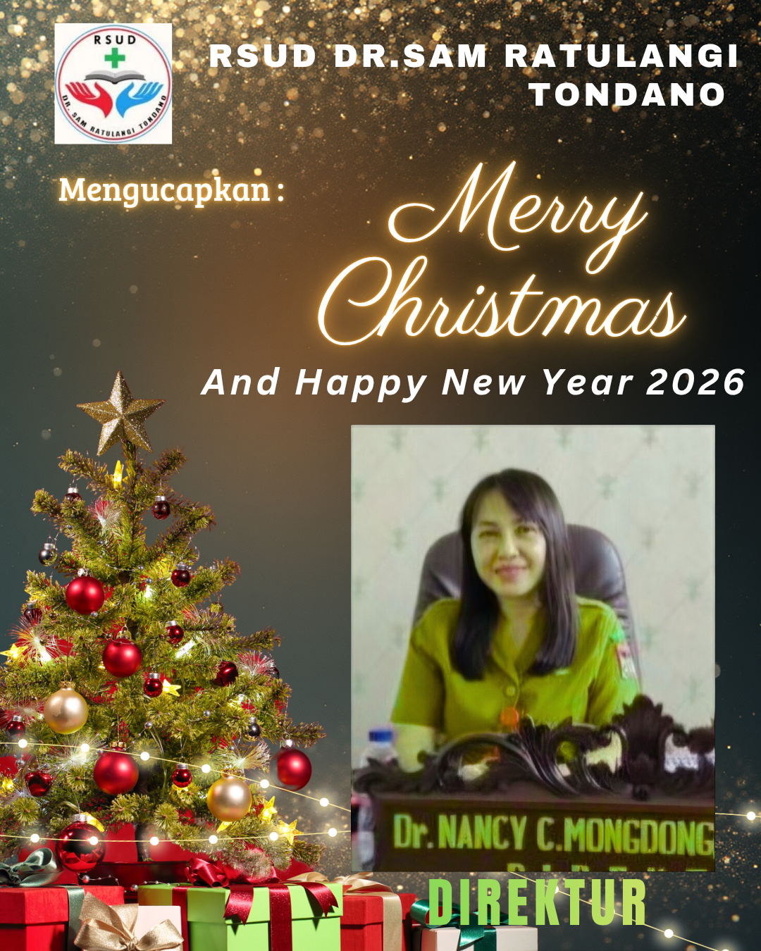 Direktur RSUD Dr Sam Ratulangi Tondano, dr. Nancy Mongdong MHSM, Sp.PD bersama seluruh jajaran mengucapkan, Selamat Natal dan Tahun Baru Tahun 2026