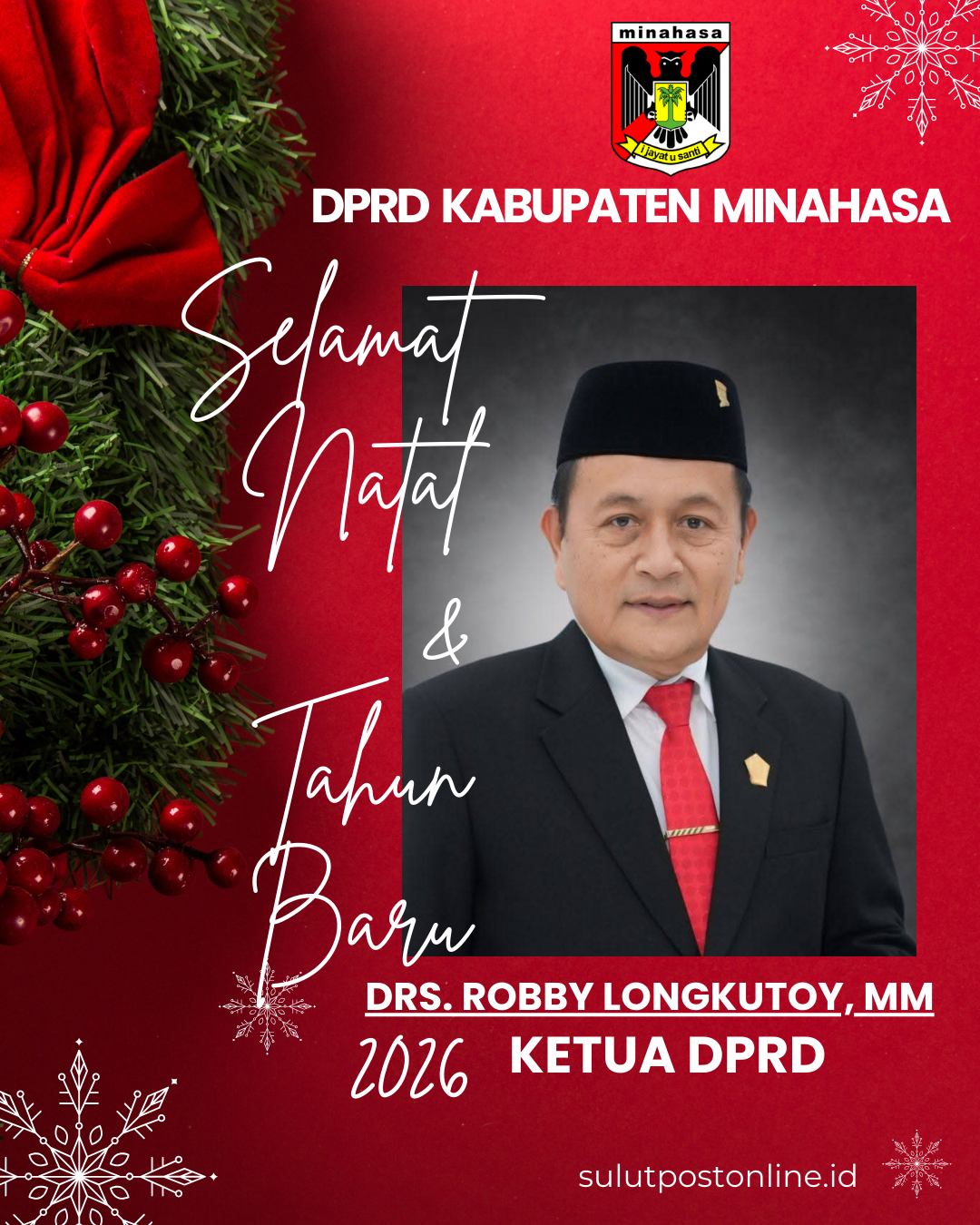 Ketua DPRD Minahasa Drs. Robby Longkutoy MM, mengucapkan Selamat Natal dan Selamat menyongsong Tahun Baru Tahun 2026. Tuhan Yesus Memberkati Masyarakat Minahasa.