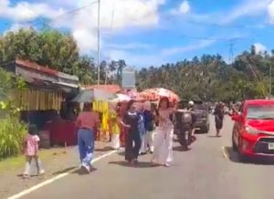 Dimana puluhan warga desa tersebut, berbondong-bondong menghentikan setiap kendaraan roda dua dan roda empat yang lewat, bukan untuk mengganggu perjalanan warga, tetapi mereka hanya meminta para penumpang untuk turun sebentar mencicipi berbagai menu makanan siap saji yang telah siapkan.