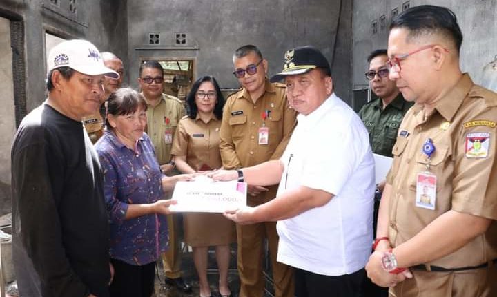 MINAHASA, SULUTPOST – Pemerintah Kabupaten Minahasa menyerahkan bantuan bencana kepada 11 keluarga yang terdampak bencana angin kencang dan kebakaran di kecamatan Tondano Raya, Selasa (9/5). Bantuan diserahkan langsung oleh Wakil Bupati Minahasa Robby Dondokambey.