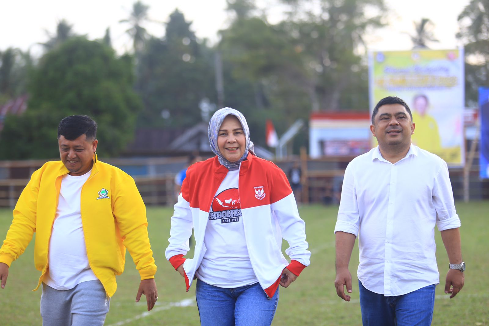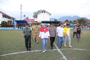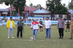 Wali Kota Kotamobagu Ir.Hj.Tatong Bara, di dampingi Dandim 1303 BM, dan Kapolres Kotamobagu. pada pembukaan Turnamen Sepak Bola HK Familly Cup 2023.