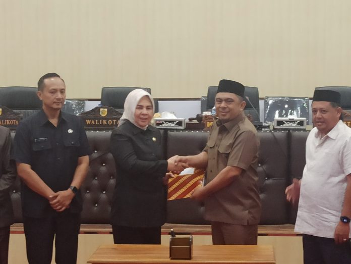 KOTAMOBAGU,SULUTPOST—Wali Kota Kotamobagu, Ir. Hj. Tatong Bara menghadiri Rapat Paripurna DPRD Kota Kotamobagu dalam rangka Pengumuman Berakhirnya Masa Jabatan Wali Kota dan Wakil Wali Kota Kotamobagu Periode 2018 – 2023, Kamis (24/8).