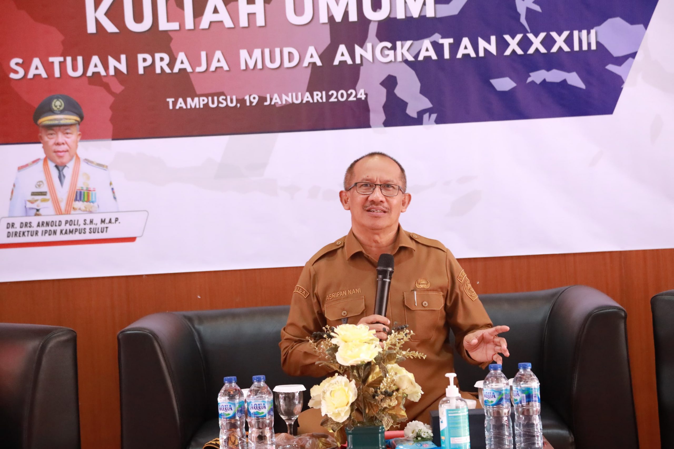 KOTAMOBAGU,SULUTPOST-Pj. Wali Kota, Dr. Drs. Hi. Asripan Nani., M.Si., sampaikan Kuliah Umum bagi Satuan Praja Muda Angkatan XXXIII, Institut Pemerintahan Dalam Negeri Kampus Sulawesi Utara Tahun Akademik 2023/2024.