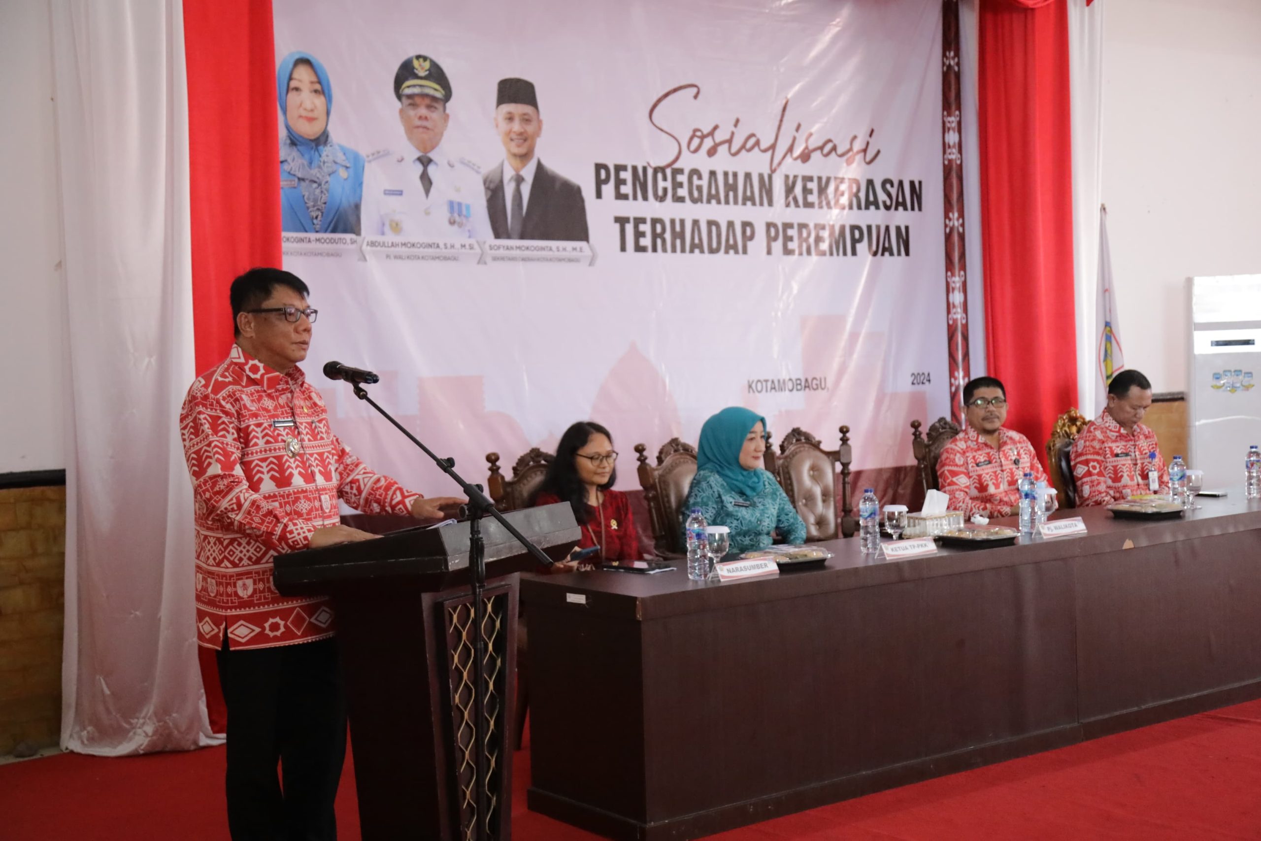 KOTAMOBAGU,SULUTPOST-Penjabat (Pj) Wali Kota Kotamobagu, Abdullah Mokoginta., S.H., M.Si Membuka secara resmi kegiatan Sosialisasi Pencegahan Kekerasan Terhadap Perempuan