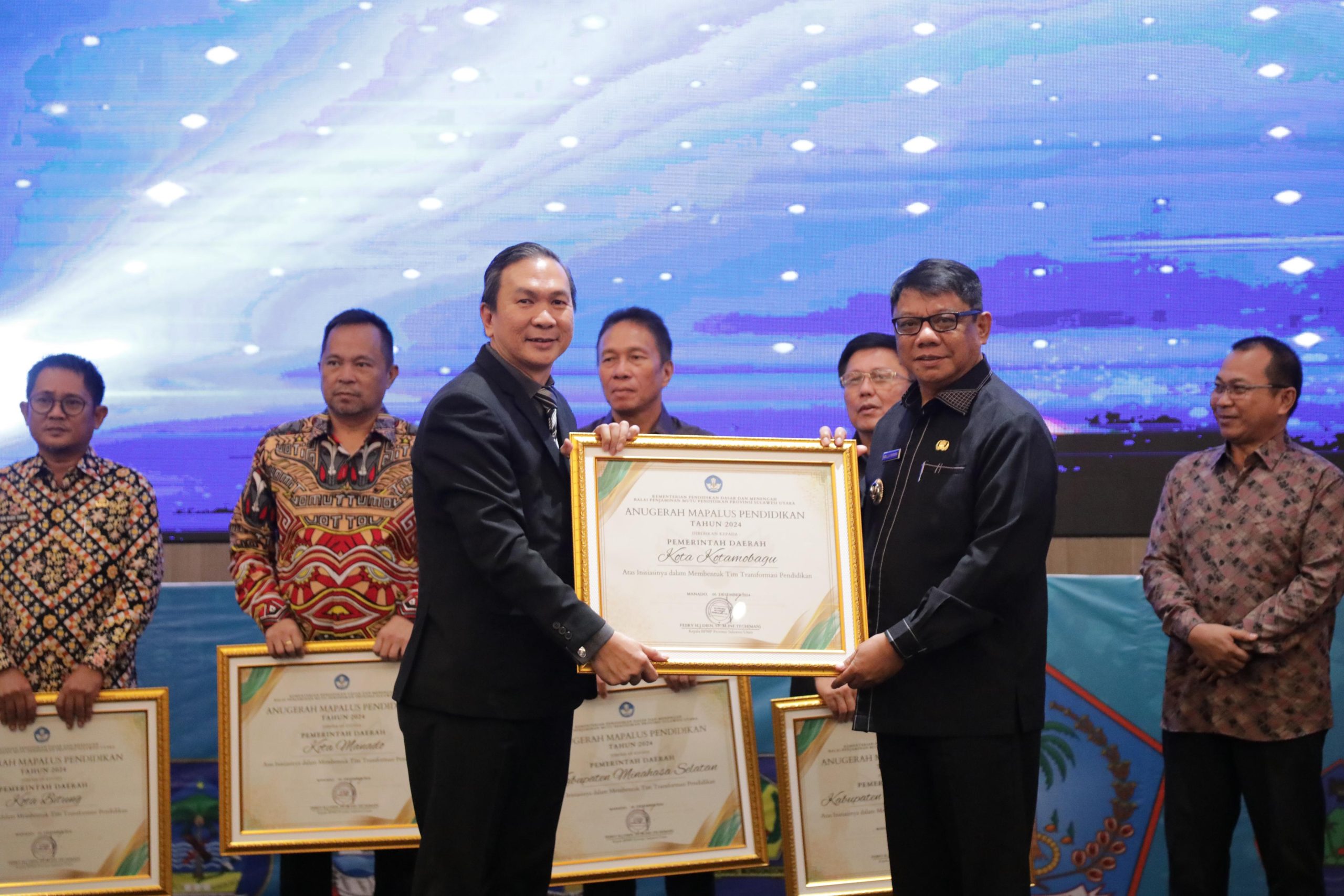 KOTAMOBAGU,SULUTPOST- Pj. Wali Kota Kotamobagu, Abdullah Mokoginta., S.H., M.Si Terima 3 Anugerah Mapalus Pendidikan Tahun 2024, Kategori Atas Inisiasi dalam membentuk Tim Transformasi Pendidikan, Kategori Atas dukungan Regulasi Program Prioritas Pendidikan dan Kategori Atas Penetapan Target Perencanaan Daerah Bidang Pendidikan
